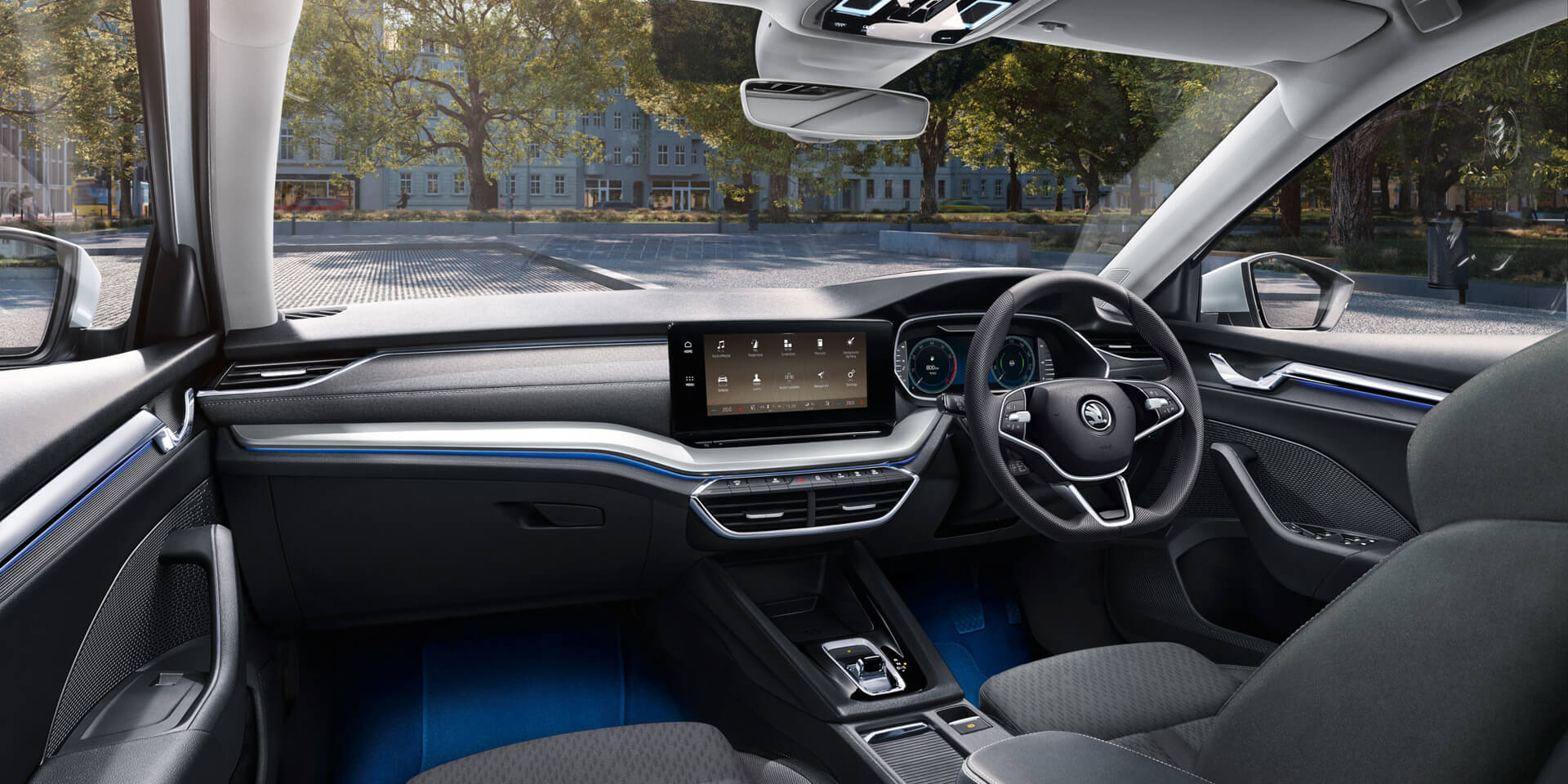 The OCTAVIA’s head-up display shows driving data in such a way that the driver’s eyes don’t have to refocus, thereby significantly reducing the possibility of distraction. Disclaimer – Available in optional Premium Pack Overseas model shown.