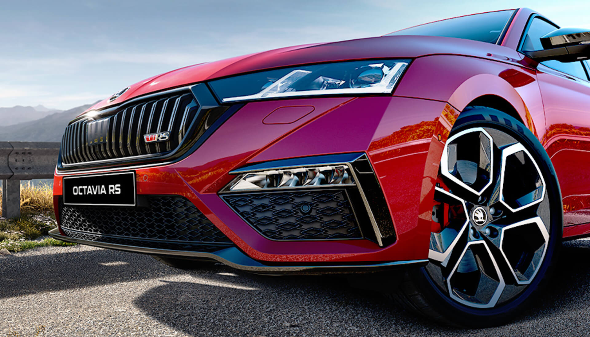 The car features bumpers in RS design and glossy black elements such as side-view mirror caps, side window strips, front grille frame and air curtain framing darkened fog lamps, alongside 19” ALTAIR anthracite alloy wheels