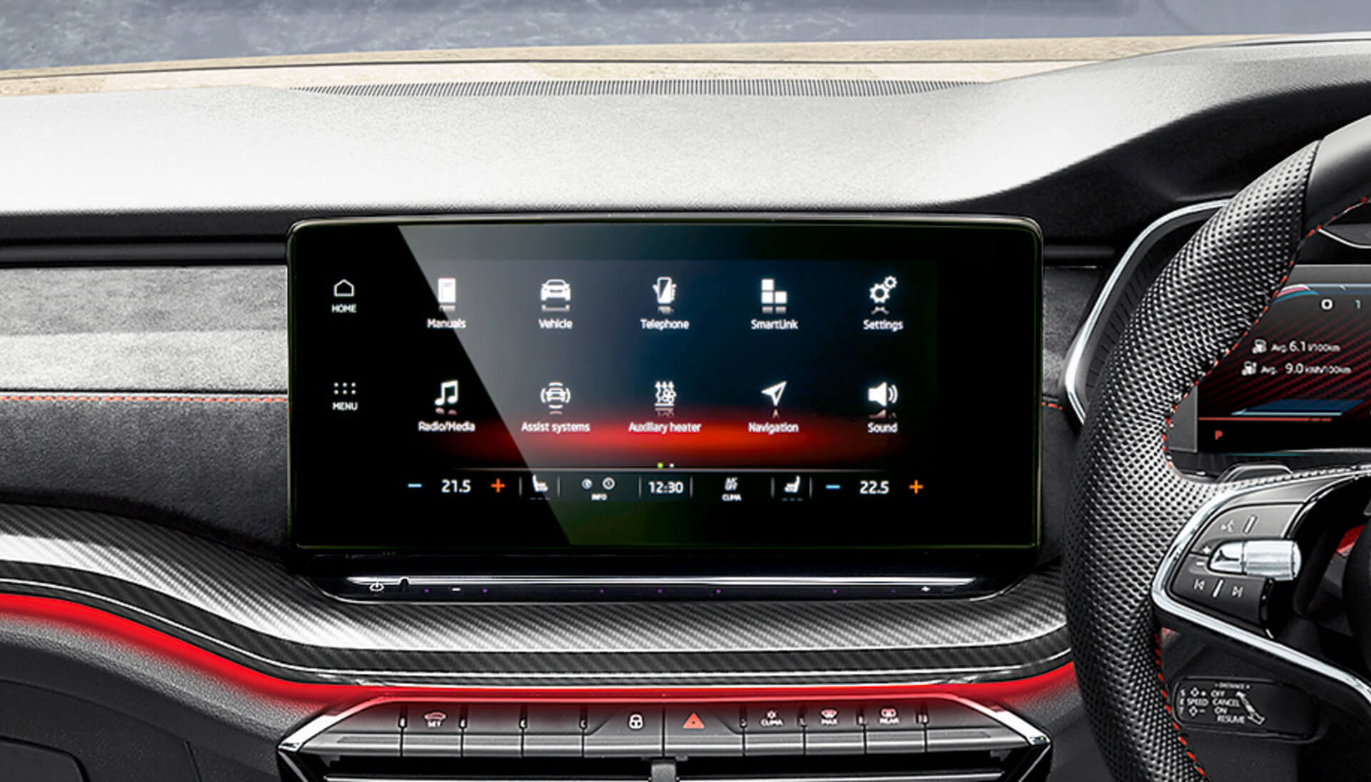 The OCTAVIA’s head-up display shows driving data in such a way that the driver’s eyes don’t have to refocus, thereby significantly reducing the possibility of distraction. Disclaimer – Available in optional Premium Pack Overseas model shown.