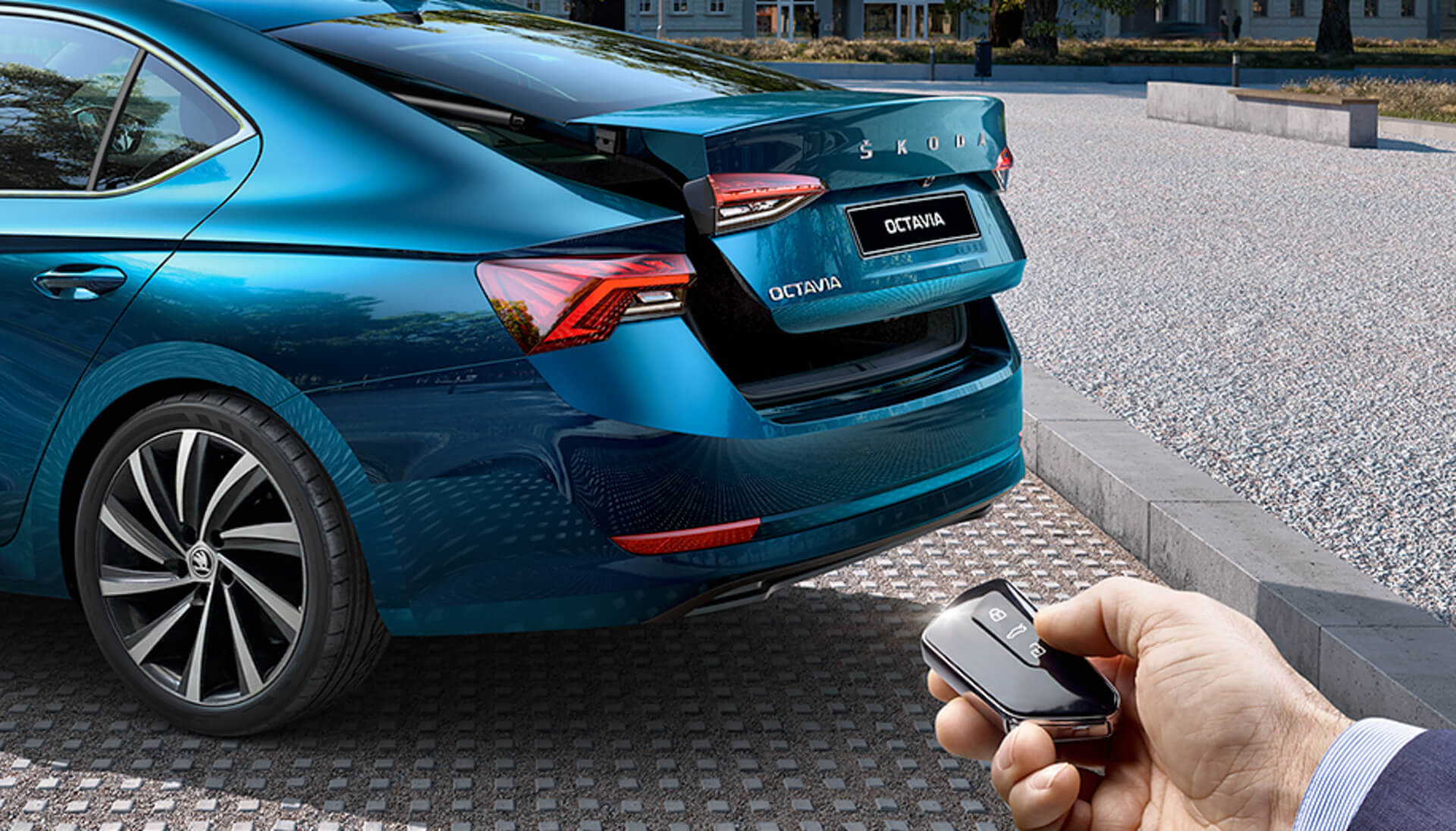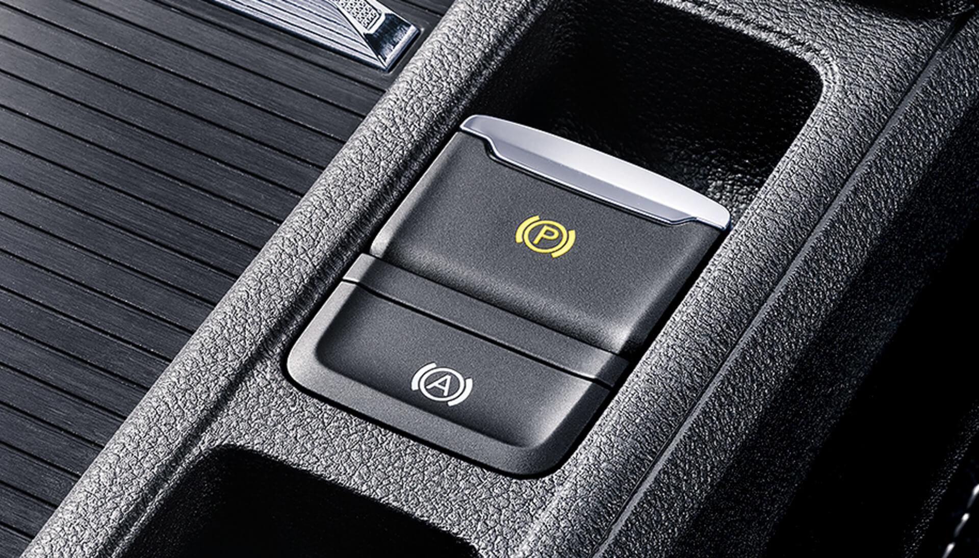 The new OCTAVIA is fitted with an electric parking brake (as standard across all car versions) that has replaced the usual mechanical handbrake. The electric parking brake acts on the rear wheels and can be manually activated/deactivated by the button located on the centre console between the front seats.
