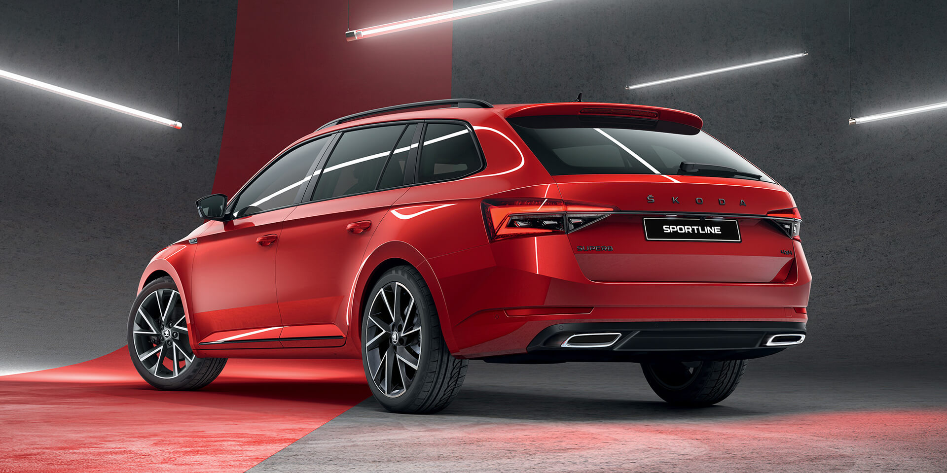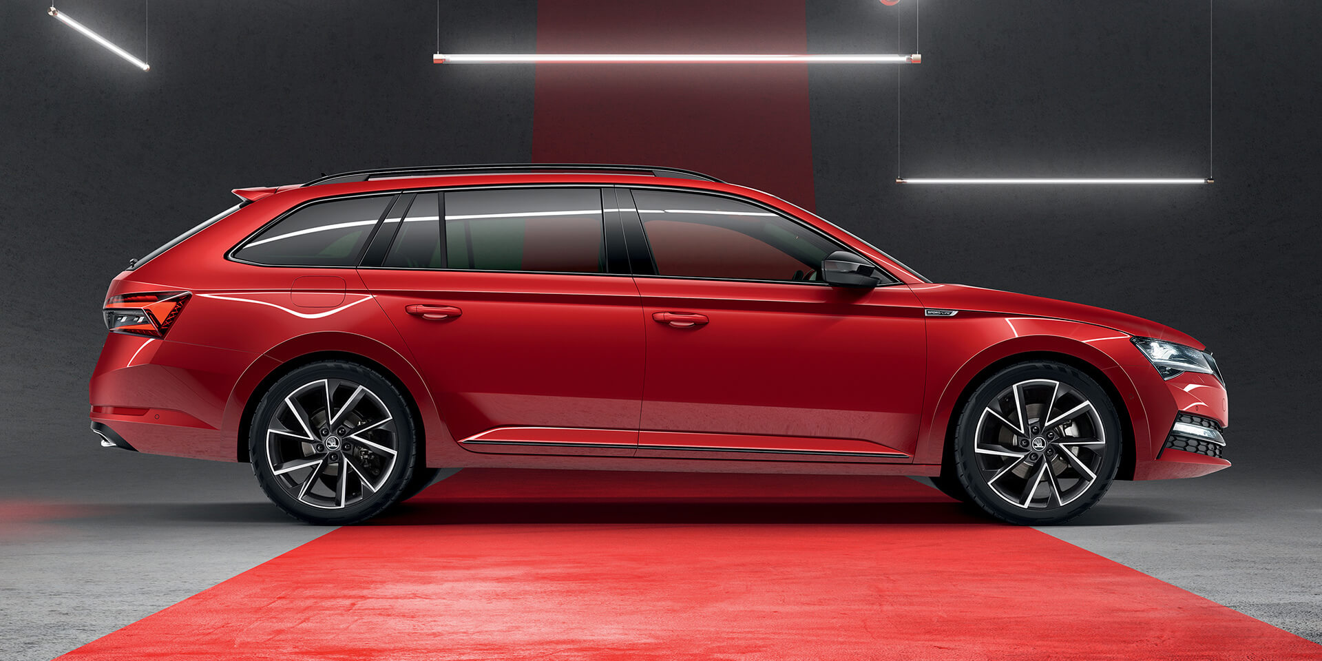 We hope you like attention. The SUPERB SPORTLINE Wagon is instantly recognisable by its black design features including darkened fog lights, glossy black side door strips and black trim on the lower grille. Its sporty aesthetics include 19” Vega anthracite alloy wheels, black rear diffuser with twin chrome exhaust, and glossy black rear spoiler.