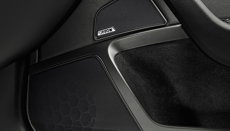 You know what else sounds great? The Canton Sound System⊿ delivers 610W output across 12 high-performance speakers: 10 in the side doors, one centrally located in the dashboard, and a sub-woofer in the boot. -