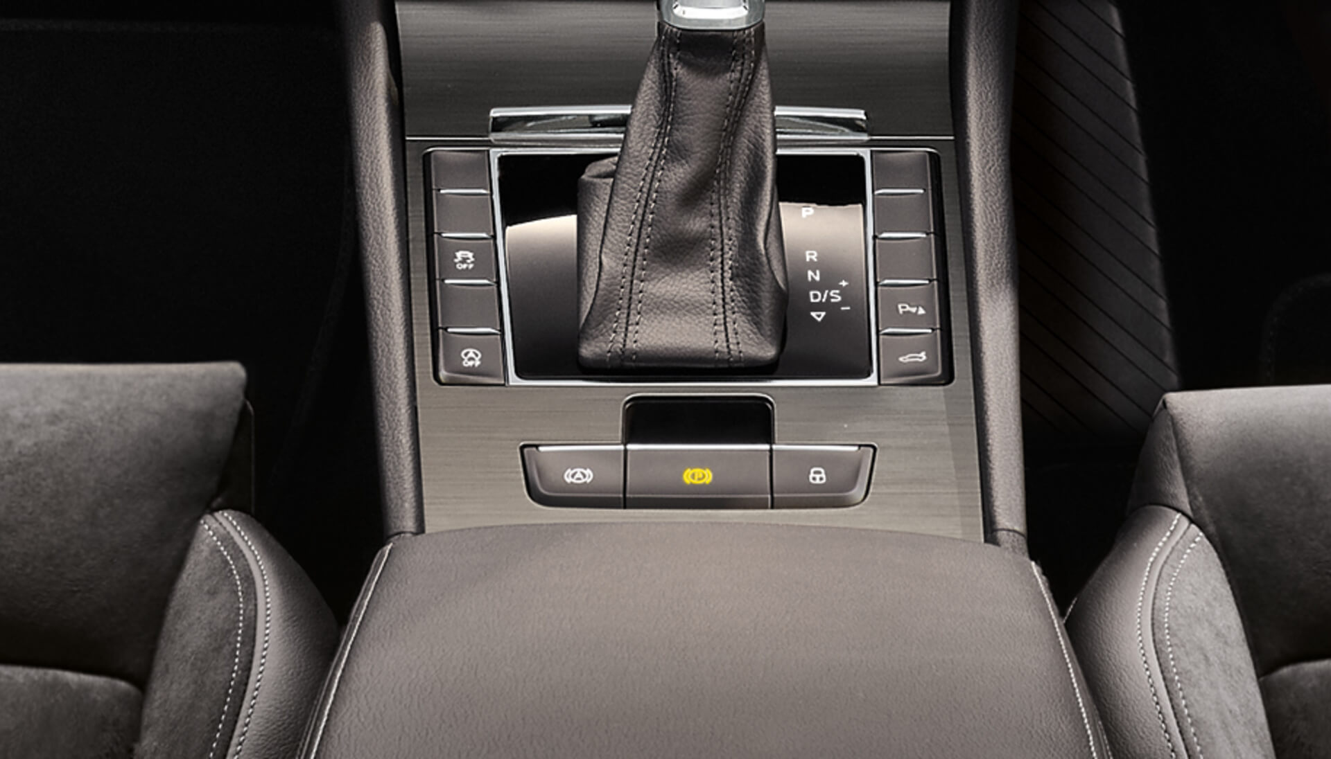 The SUPERB Style is fitted with an electric parking brake (as standard) and has replaced the usual mechanical handbrake. The electric parking brake acts on the rear wheels and can be manually activated/deactivated by the button located on the centre console between the front seats.