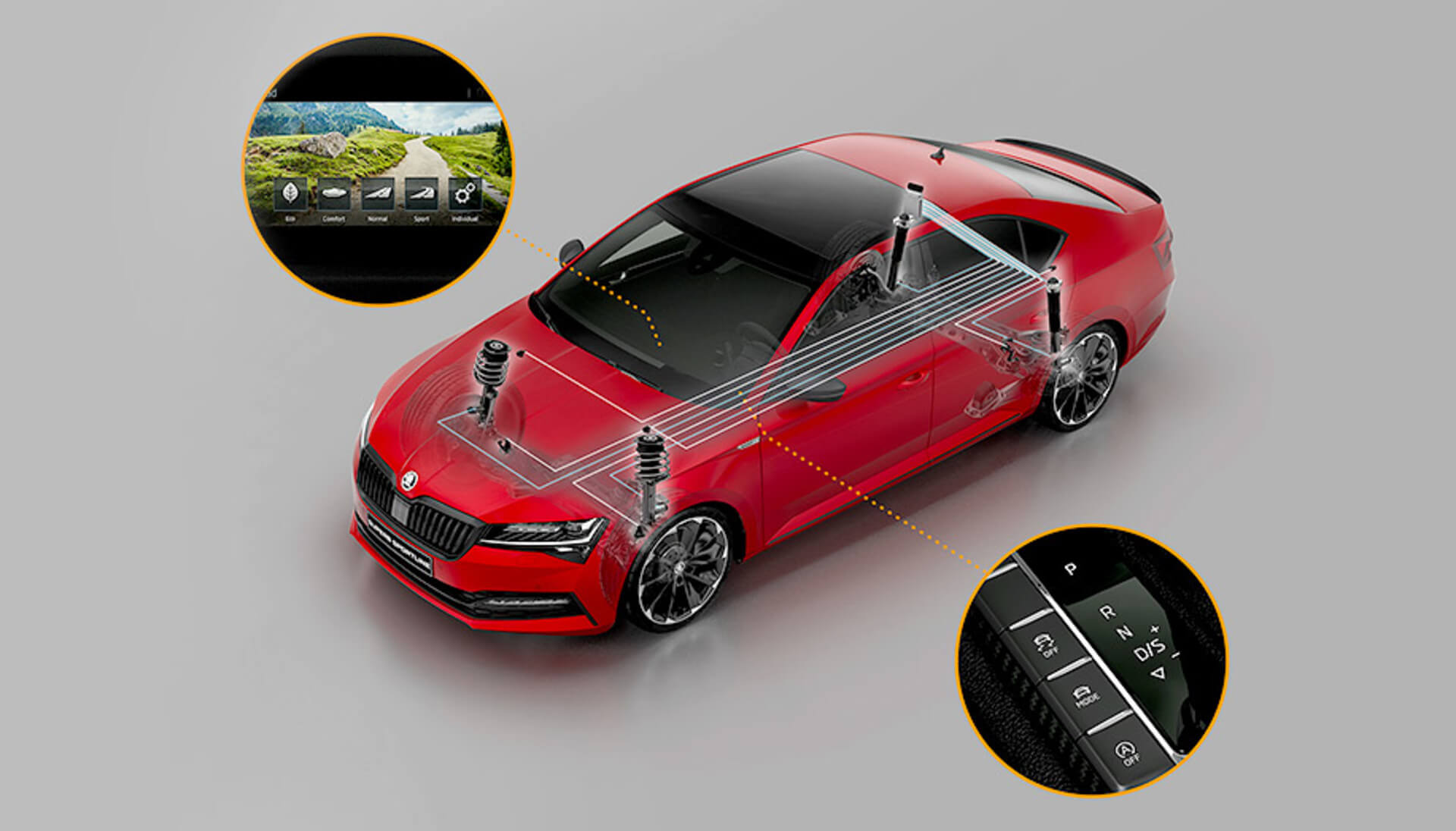 As you get to know your SUPERB, it gets to know you too. Dynamic Chassis Control continuously evaluates and responds to various driving situations, adapting to decreases in speed and varying steering characteristics across five driving modes – Normal, Comfort, Eco, Sport and Individual – tailored to your specific requirements. Available with the optional Premium Pack, at extra cost.
